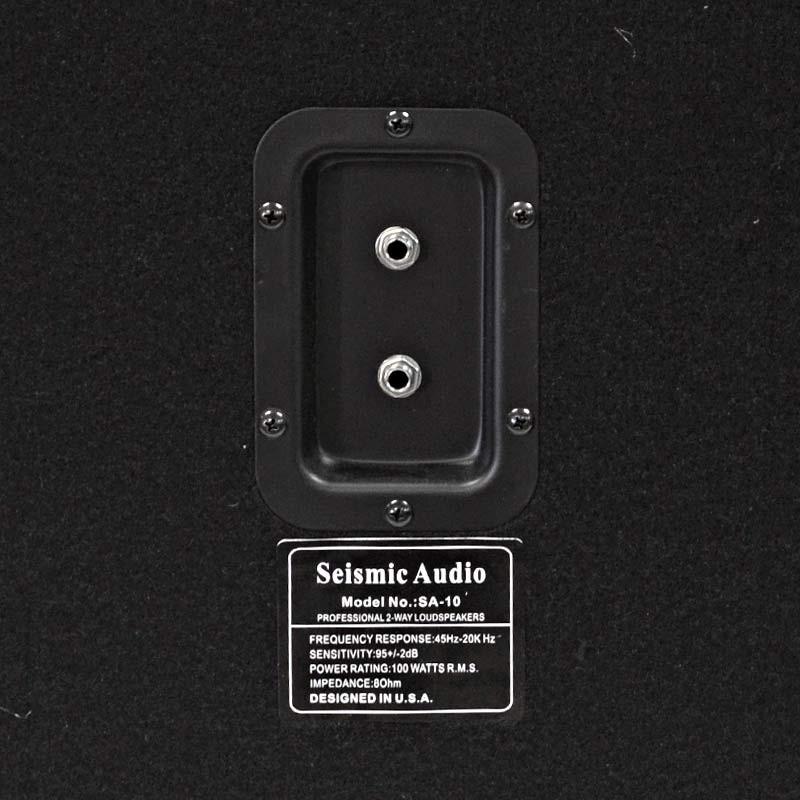 This amazing 10 inch PA / DJ Speaker Cabinet delivers every sound loud and clear with a 10 inch woofers, 3x7 and 3x3 piezo tweeter, a frequency response of 55Hz to 20,000Hz, and 100 watts RMS, 200 watts peak power. It doesn't matter if you are doing a DJ gig, a wedding, a church event, or a club gig, this speaker will deliver the sound you want! Great quality mains are very hard to find, especially at a decent price. The Seismic Audio brand was designed to make the professional musician, as well as the musician low on cash, sound great. With your purchase, you will receive one 10" PA / DJ Speaker Cabinet pictured and described above.
