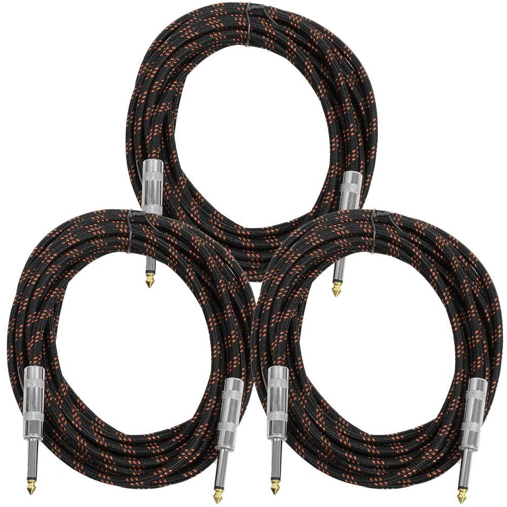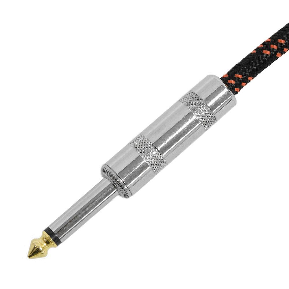 These are awesome cloth covered guitar cables that has all metal connectors. Both ends are straight 1/4" TS connectors. This cord can be used as a guitar cable or instrument cable. It has a nice quality feel to it. Any guitar player or bass player should be pleased with the ruggedness and quality of this cable. This cable is 18 feet long.