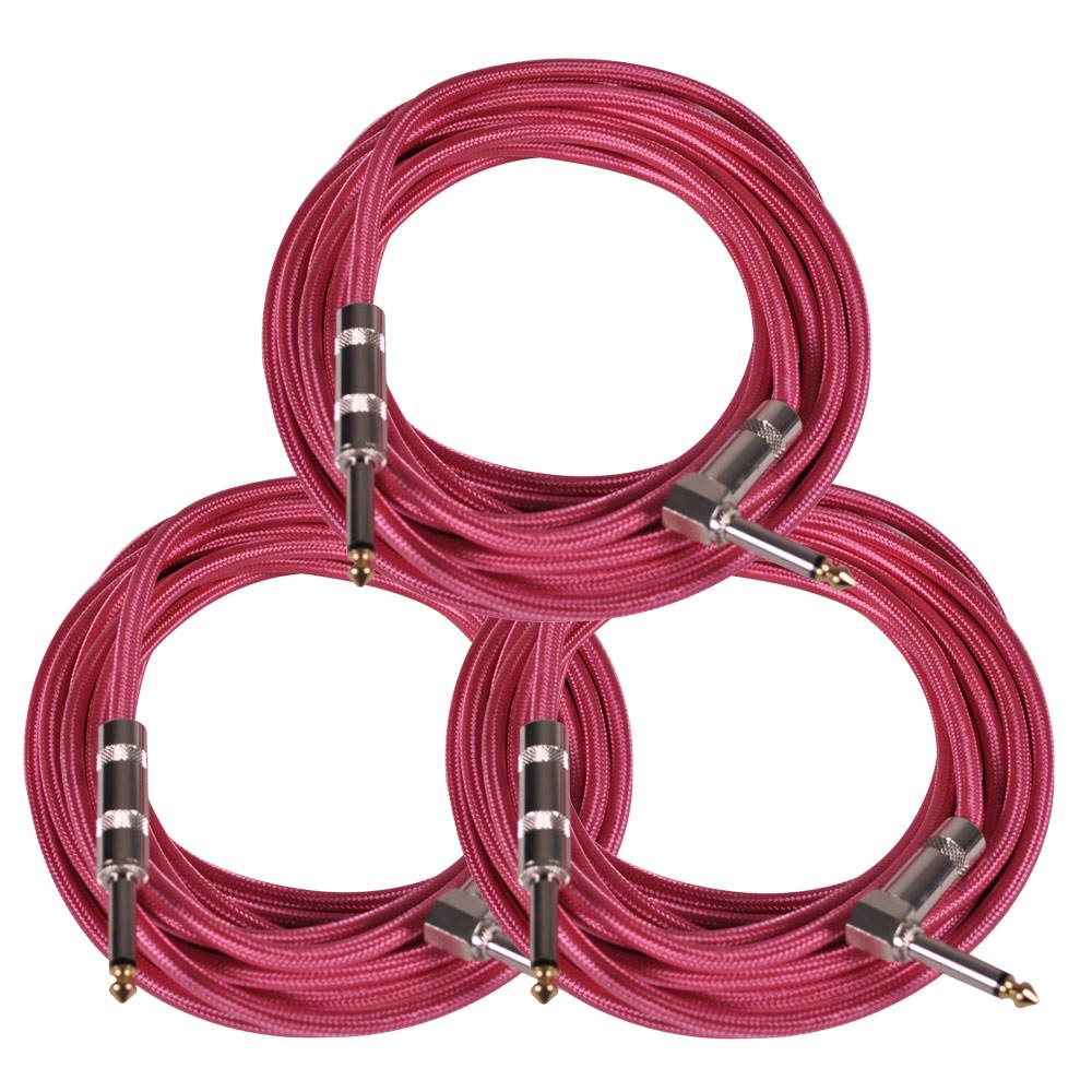 3 Pack of Pink 20 Foot Woven Tweed Cloth Guitar Cable or Instrument Cables