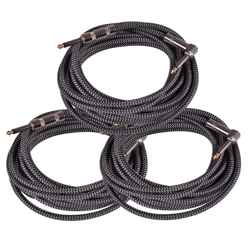 3 Pack of Silver 20 Foot Woven Tweed Cloth Guitar Cable or Instrument Cables