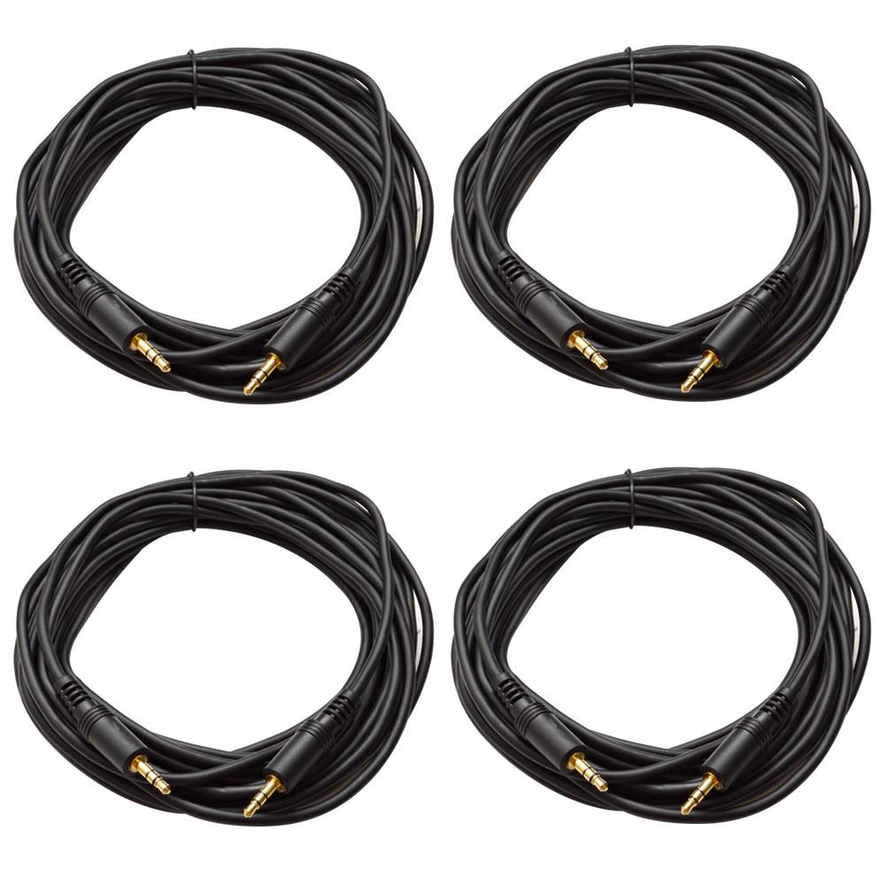 Pack of Four 25' 1/8" to 1/8" Cables for iPhone, iPod, iPad, MP3, Laptop, etc