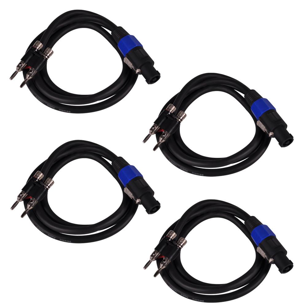 - CONTENTS: 4 Pack of 5 Foot, 12 Gauge Banana to Speakon Speaker Cables