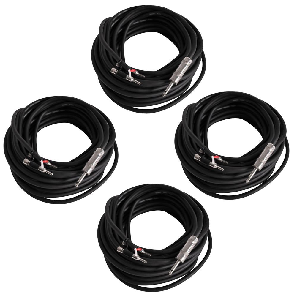 4 Pack of 50 Foot Pro Audio Banana to 1/4" Speaker Cables