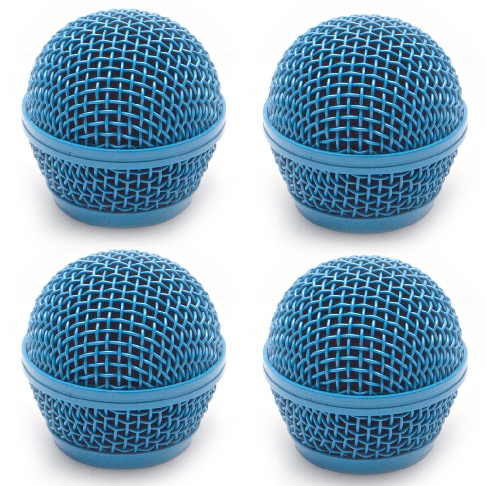 Replacement Steel Mesh Microphone Grill Head - Blue (4 Pack)