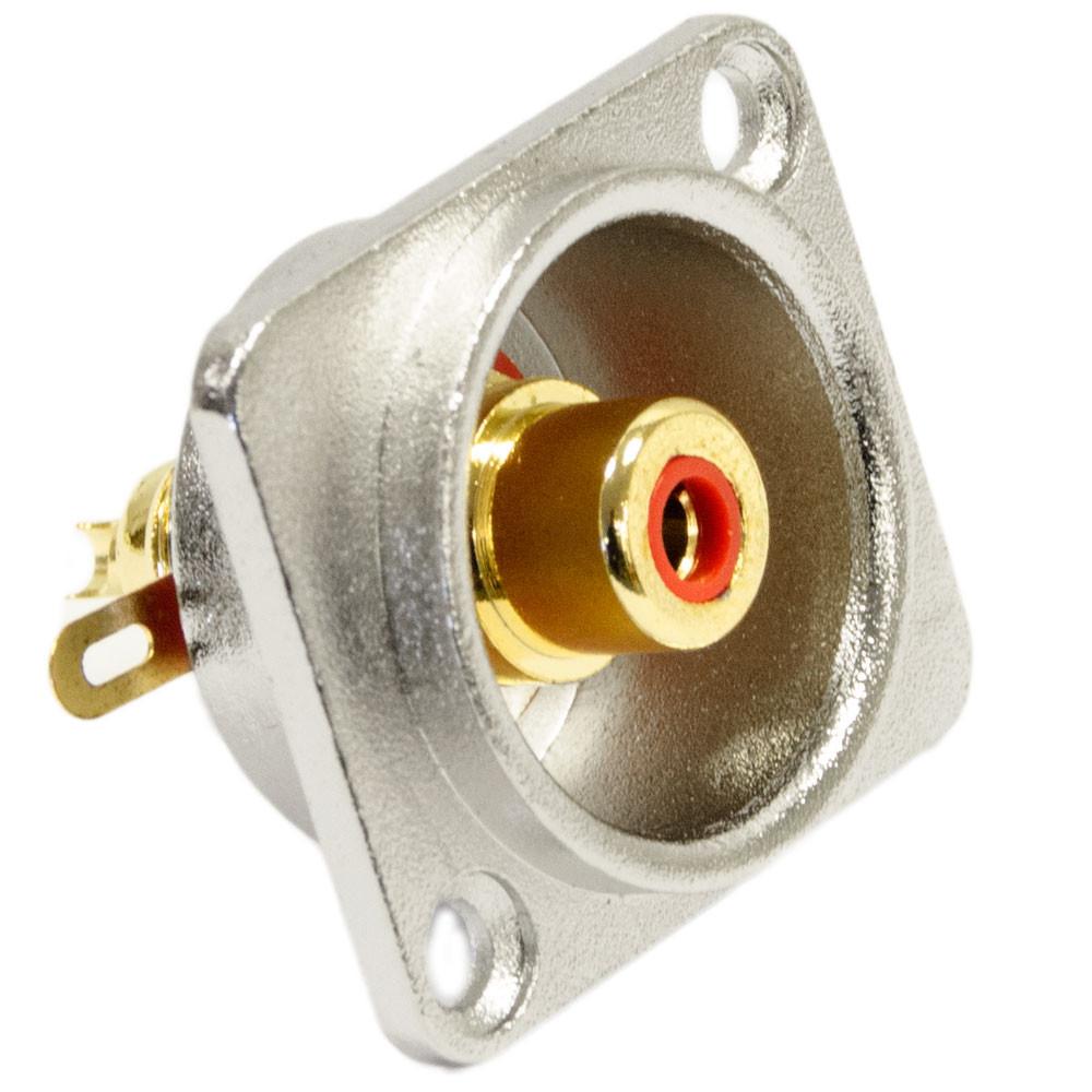 - FEATURES: Panel Mount Connector - Red Isolation Washer - Nickel Plated - High Quality audio or video Connector - Fits D Series Hole Pattern