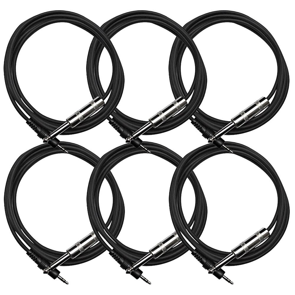 6 Pack of 6 Foot Stereo 1/8 Inch TRS to Mono 1/4 Inch TS Patch Cables