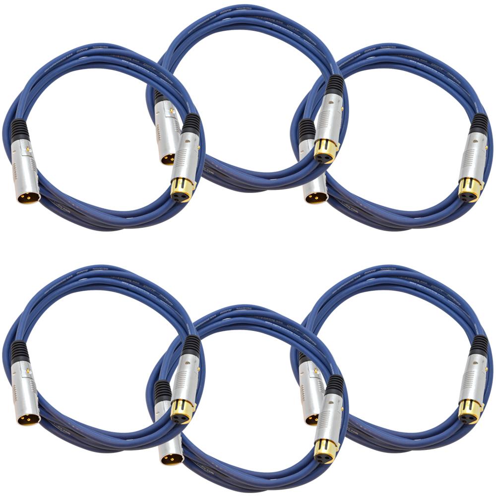 - 6 Pack of 10 Foot Blue XLR Microphone Cables