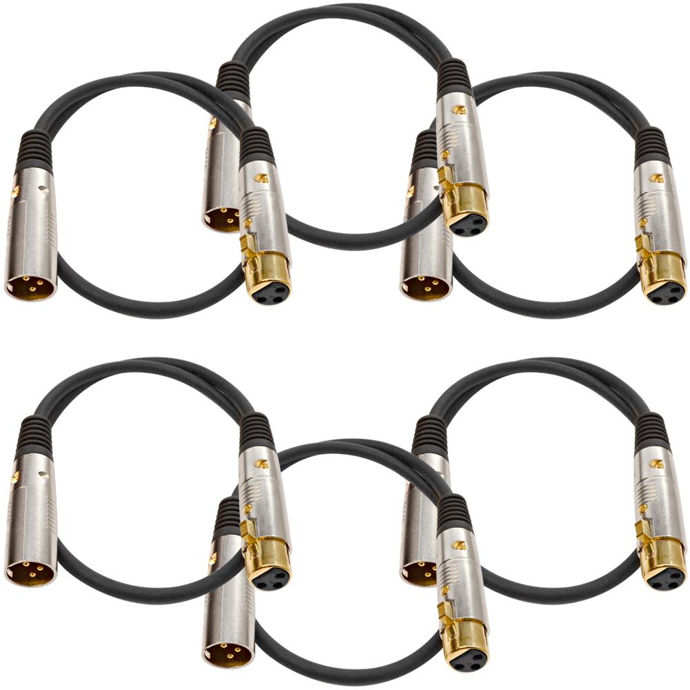 6 Pack of 2 Foot Gold Plated XLR Mic Microphone Patch Cable Cord Balanced