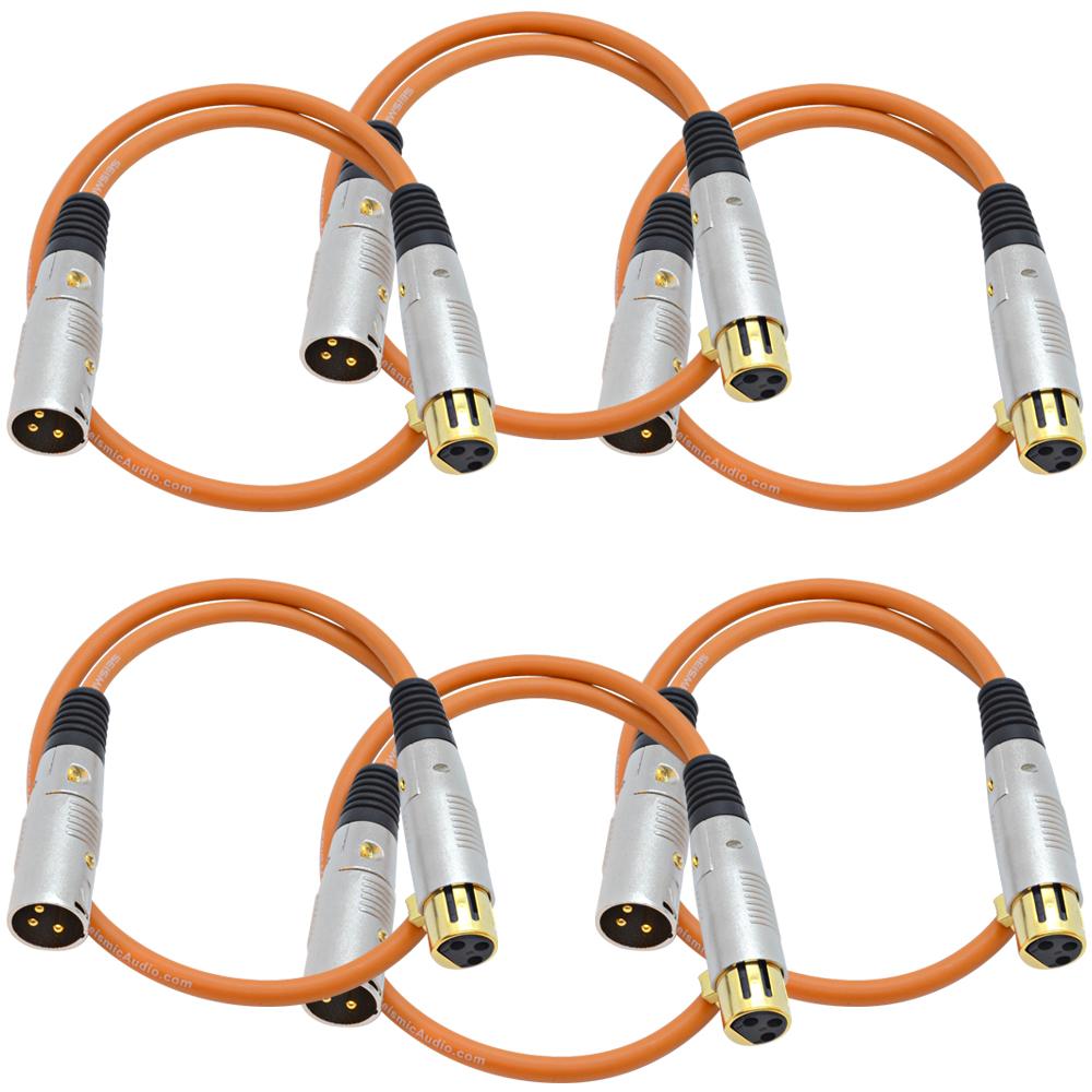 6 Pack of 2 Foot Gold Plated Orange XLR Mic Microphone Patch Cable Cord Balanced