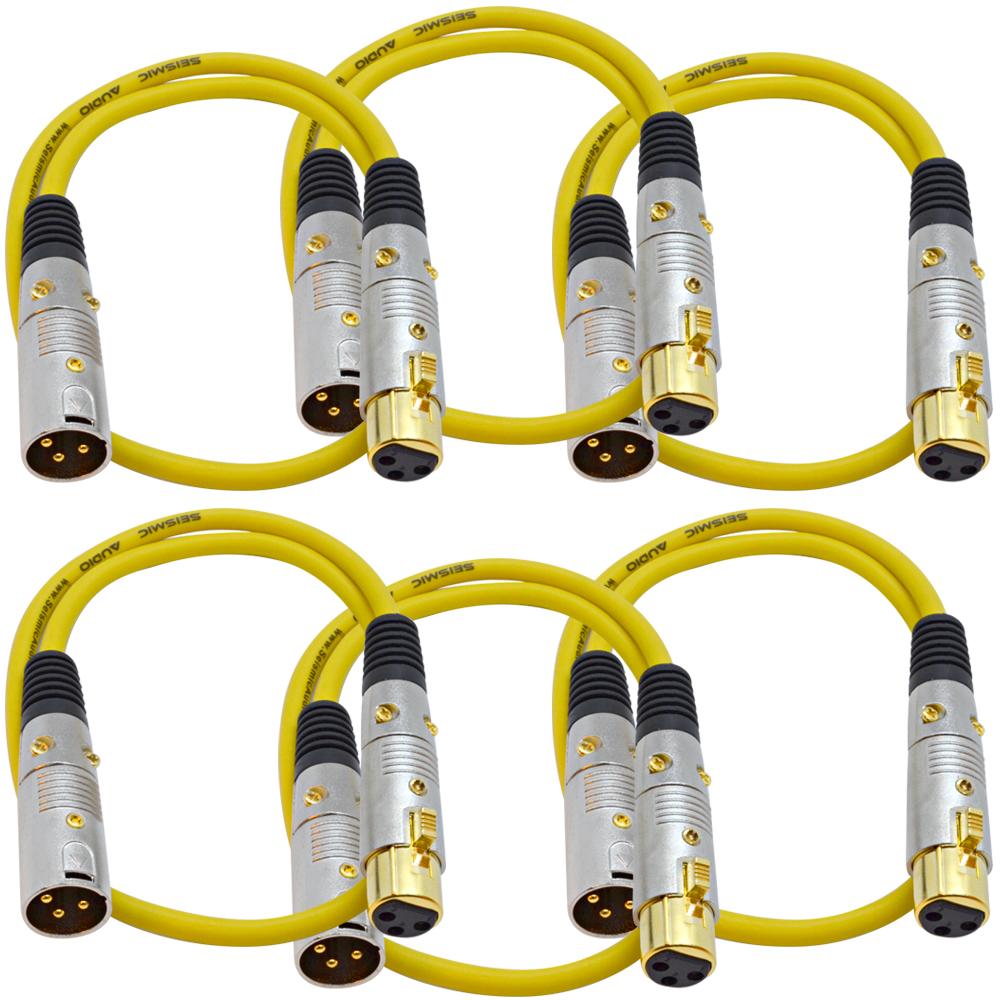 6 Pack of 2 Foot Gold Plated Yellow XLR Mic Microphone Patch Cable Cord Balanced
