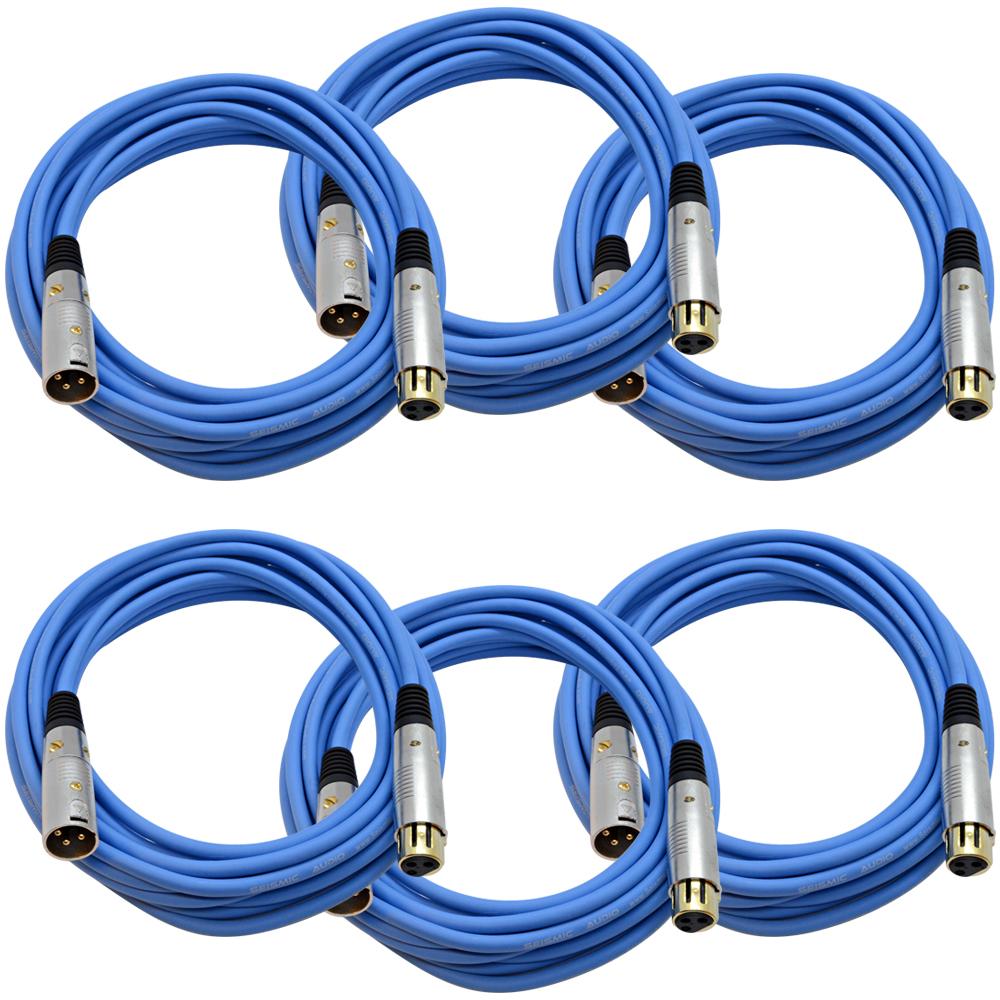 6 Pack of 25 Foot Gold Plated Blue XLR Mic Microphone Patch Cable Cord Balanced