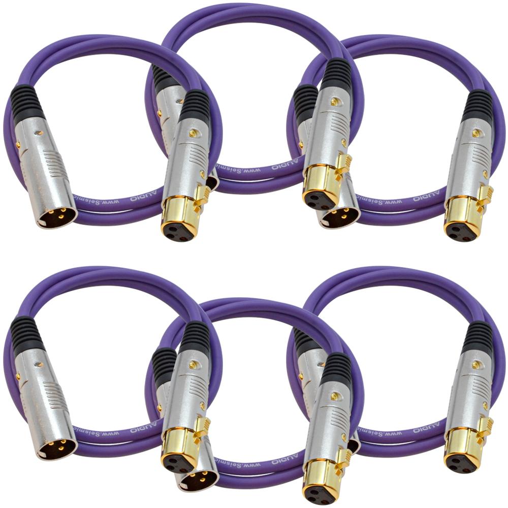 6 Pack of 3 Foot Gold Plated Purple XLR Mic Microphone Patch Cable Cord Balanced
