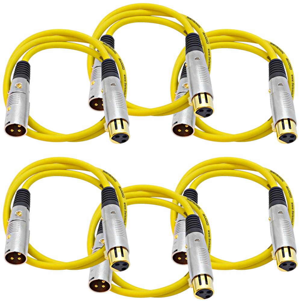 6 Pack of 3 Foot Gold Plated Yellow XLR Mic Microphone Patch Cable Cord Balanced