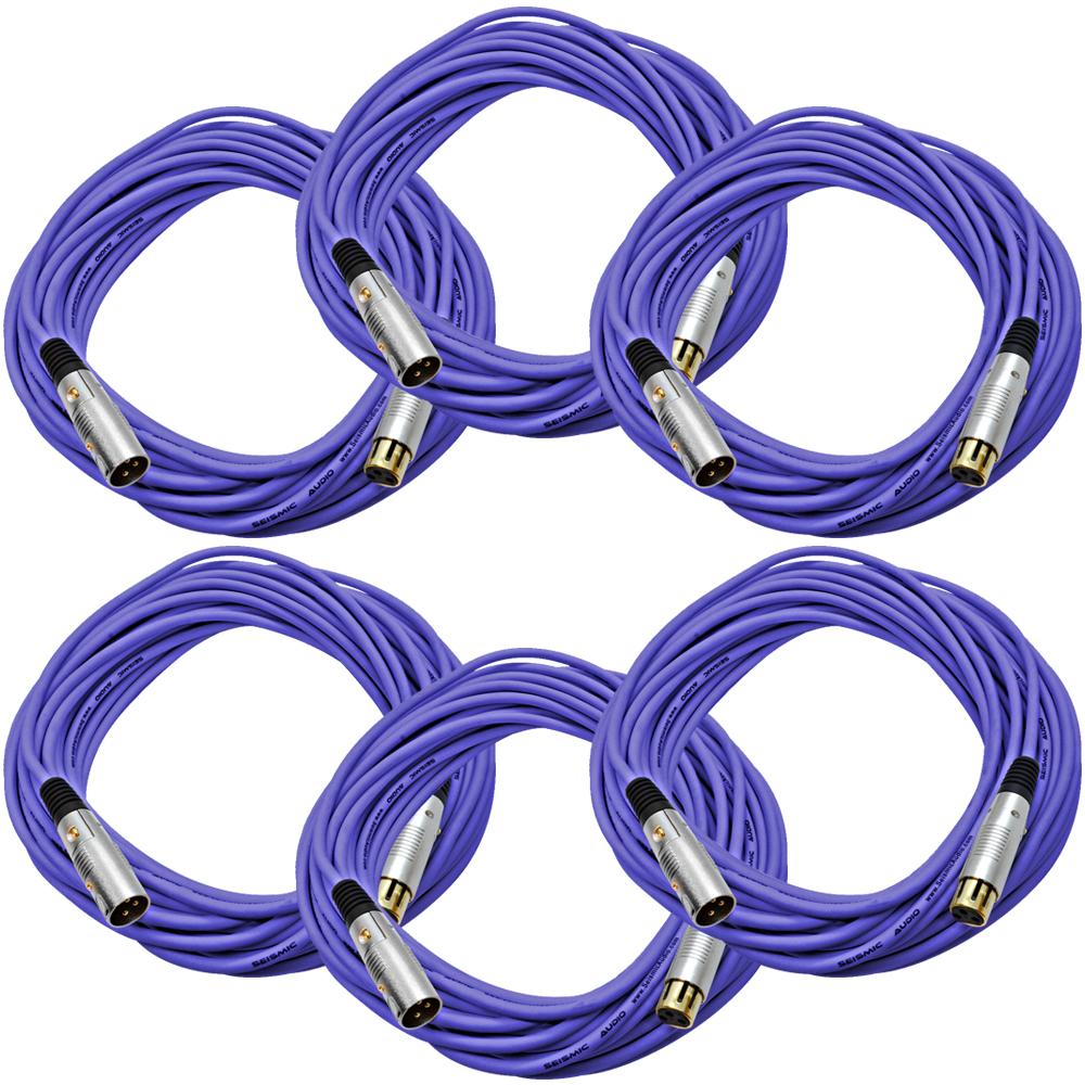 6 Pack of 50 Foot Gold Plated Purple XLR Mic Microphone Patch Cable Cord Balanced