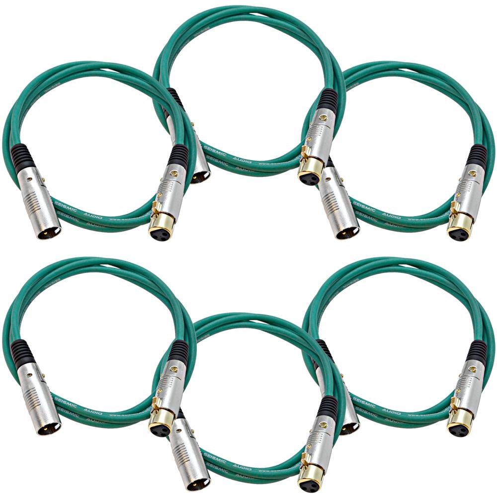 6 Pack of 6 Foot Gold Plated Green XLR Mic Microphone Patch Cable Cord Balanced