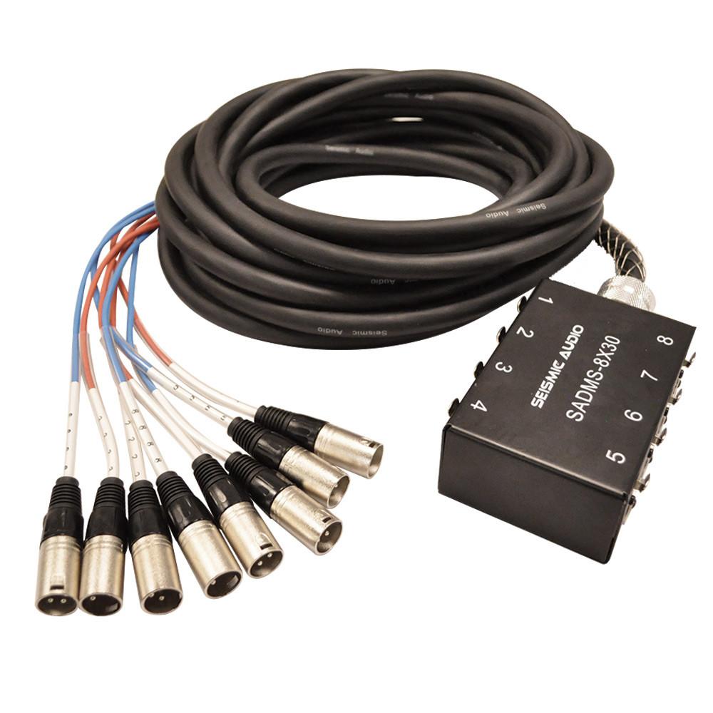 Seismic Audio's SAMDS 8x30 sub snake is 30 feet long and features a heavy duty stage box with 8 XLR Female input channels and metal mesh strain relief. The fantail has 8 XLR Male connectors for quick, easy, reliable use with your mixing console or digital audio dock. Great on stage or in the recording studio, for small setups, solo gigs, or adding a drum kit to the mix. SAMDS snakes are available in 6 channel and 8 channel configurations, at 30' and 50' lengths. Installed or on-the-go, Seismic Audio cable snakes are built to last. Pro Audio depends on a quality signal path, so each snake channel features heavy duty shielded conductor pairs for maximum noise rejection and crystal clear sound. Great cable snakes can be hard to find at a decent price but Seismic Audio is dedicated to high quality, budget friendly gear for all applications. With your purchase you will receive one compact sub snake cable, pictured and described. For trouble free, crystal clear sound, go Seismic Audio!