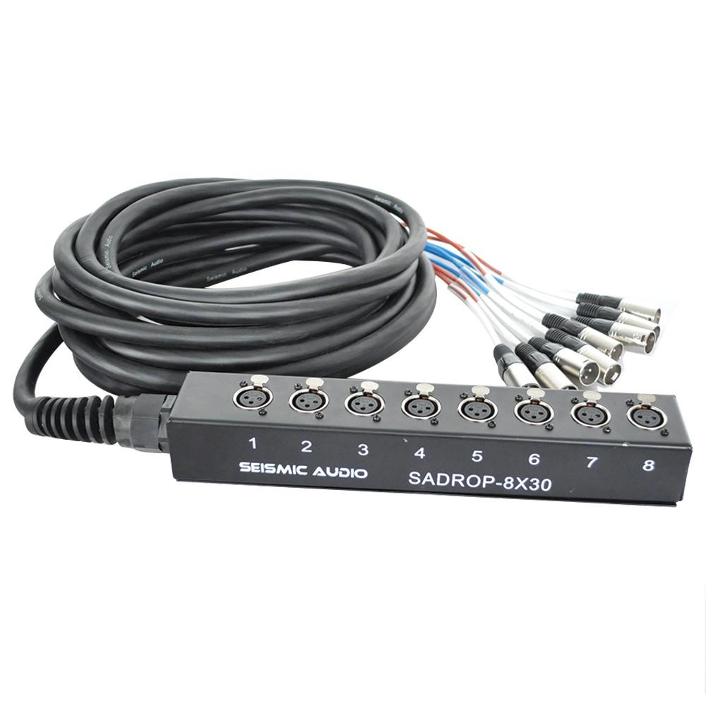 This Seismic Audio 8 channel drop snake is 30 feet long and features 8 XLR Female inputs on a heavy duty stage box. The fantail has 8 XLR Male connectors for hassle free maintenance and quick, easy, reliable use with your mixing console or digital audio dock. Great on stage or in the recording studio, for small setups, solo gigs, or adding a drum kit to the mix SADROP snakes are available in 6 channel and 8 channel configurations, at 30' and 50' lengths. Installed or on-the-go, Seismic Audio cable snakes are built to last. Pro Audio depends on a quality signal path, and each channel of our audio snakes features heavy duty shielded conductor pairs for maximum noise rejection and crystal clear sound. Great cable snakes can be hard to find at a decent price but Seismic Audio is dedicated to high quality, budget friendly gear for all applications. For trouble free, crystal clear sound, go Seismic Audio!