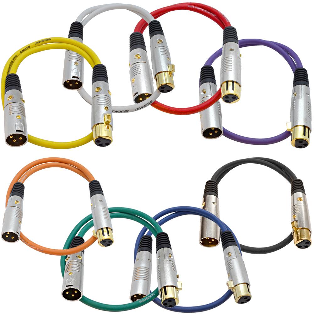 8 Pack of 2 Foot Multi Colored Gold Plated XLR Mic Microphone Patch Cables