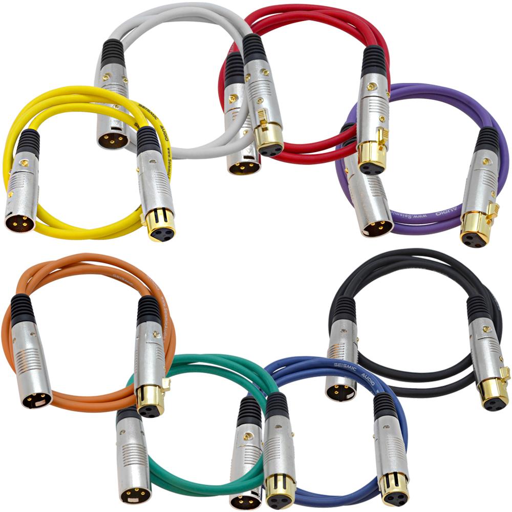 8 Pack of 3 Foot Multi Colored Gold Plated XLR Mic Microphone Patch Cables
