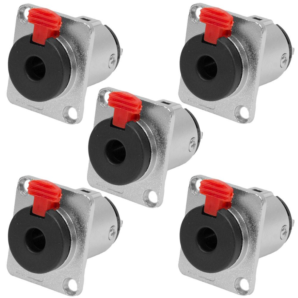 5 Pack of Locking 1/4" Female Panel Mount Connectors