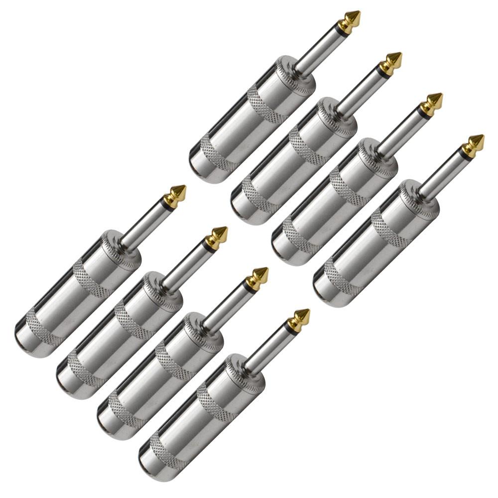 You can never have too many adapters in your toolbox. These adapters are great for a quick fix or when you are in a pinch and need to convert a cable. Awesome quality connectors are very hard to find, especially at a decent price. With your purchase, you will receive eight large barrel 1/4" nickel mono connectors pictured and described. So, put it in your cart today and get ready for years of trouble-free, crystal clear sound!