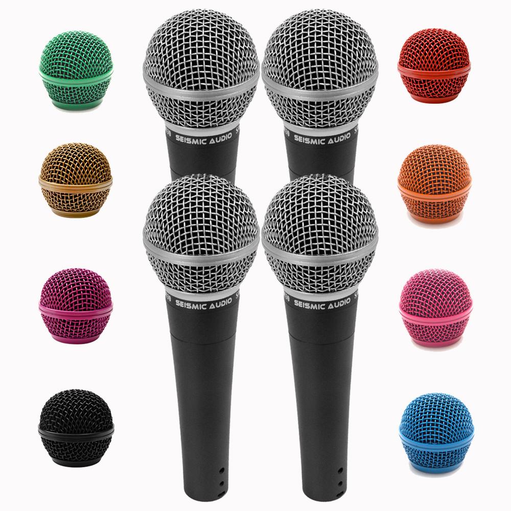 4 Pack of Dynamic Vocal Microphones with Interchangeable Steel Mesh Grill Heads