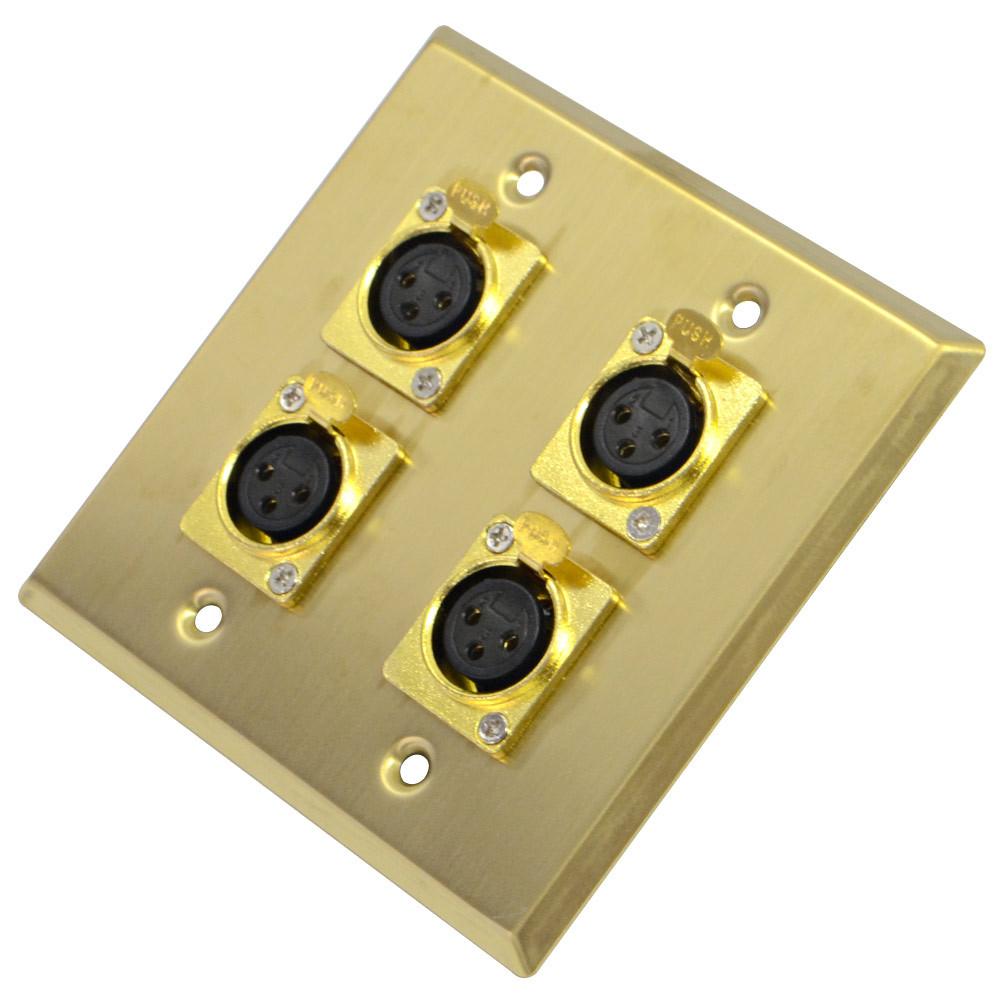 Gold Stainless Steel 2 Gang XLR Female Wall Plate