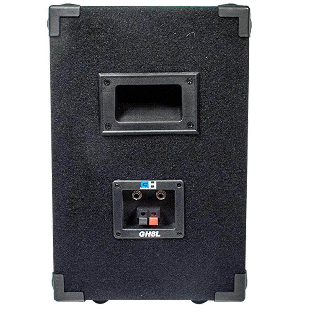 The GH8L is a 2 way passive loudspeaker built from a 8 Inch High Output Mid/Low Pulp Ribbed Woofer and a 1 Inch High Temp Multi Layer Copper Voice Coil mounted on a Wide Dispersion High Frequency 1 Inch Horn Tweeter for the highest quality sound. These components are housed in computer engineered MDF Acoustic Enclosure to get the most out of your speaker. The low end is enhanced by a Tuned Bass Reflex Enclosure to maximize the boom. The cabinet is made sturdy with heavy duty ABS handles and impact resistant ABS Corner Guards to make it road worthy. A steel mesh screen is installed to prevent damage to the speaker and horn. The GH8L is rated at 250 Watts RMS and 500 Watts Peak to get maximum volume from this cabinet. It is wired at 8 ohms to make it easy to daisy chain. Two parallel inputs are provided. The Grindhouse brand of Pro Audio gear is an affordable alternative to high priced audio gear. Do not be fooled by the price! Low prices do not always translate to a cheap product. Grindhouse Speakers are high quality product and produce a superb sound. Give them a shot and you will be happy you did