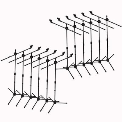 This is a heavy duty black microphone stand that comes with 5 microphone clips. These stands are ideal for bands, churches, schools, or any other function where microphones are used. Each stand comes with 2 cable clips to keep your set up nice and clean and avoid tripping over your microphone cables. They have an adjustable boom and raise up to 60" You can mount up to two microphones on each stand at any time.