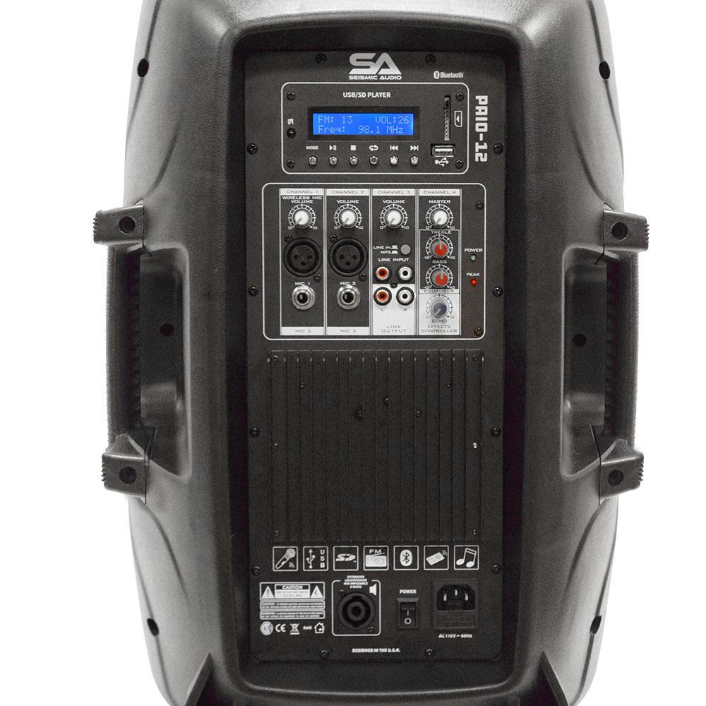 This package is truly all-in-one and has everything you need. The amp on the active speaker features built in Bluetooth, USB, SD, FM and lots of other functions. Perfect for indoor or outdoor parties, cookouts, karaoke, tailgating, or live sound.