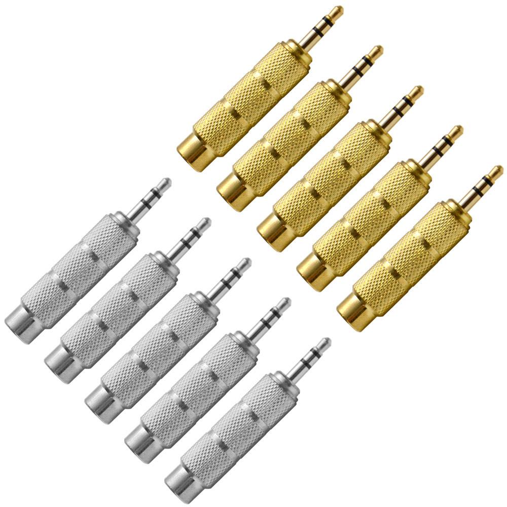 10 Pack of 1/4" Female to 1/8" Male Adapter (5 Gold & 5 Silver)