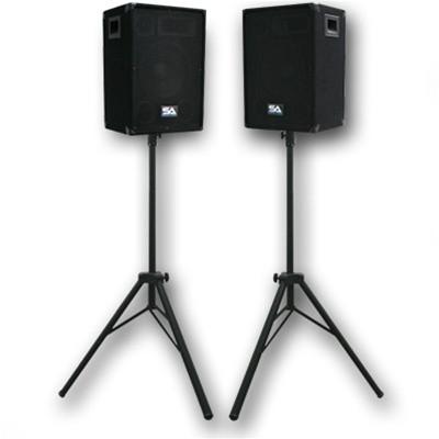 These amazing 10 inch PA / DJ Speaker Cabinets deliver every sound loud and clear with a 10 inch woofers, 3x7 and 3x3 piezo tweeter, a frequency response of 55Hz to 20,000Hz, and 100 watts RMS, 200 watts peak power. It doesn't matter if you are doing a DJ gig, a wedding, a church event, or a club gig, these speakers will deliver the sound you want! This package deal also comes with a pair of heavy duty speaker stands. These are the heavy duty pro quality stands that will last for years. These are not the cheap stands you see all over eBay. You can tell by the weight, they are high quality. They weigh twice as much as the cheap stands. The Seismic Audio brand was designed to make the professional musician, as well as the musician low on cash, sound great.