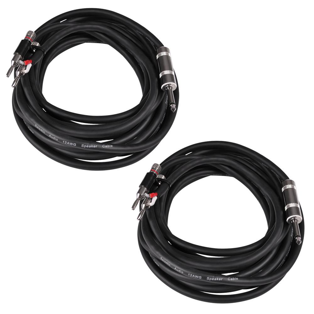 The Seismic Audio line of Premium Pro Audio Speaker Cables were designed with the high powered loudspeaker application in mind. These Banana to 1/4 Inch Pro Audio Speaker Cables are designed to handle more power and provide uniform signal for longer runs. These 1/4 Inch Speaker Cables are heavy duty! They are 12 gauge, 2 Conductor and are housed by a durable rubber insulated covering. Our Premium Banana to 1/4 Inch Speaker Cables are perfect for amplifiers, mains, monitors and subwoofers where a high power environment is involved. They are fitted with the highest quality banana and 1/4 inch male connectors on either end and are guaranteed to last!