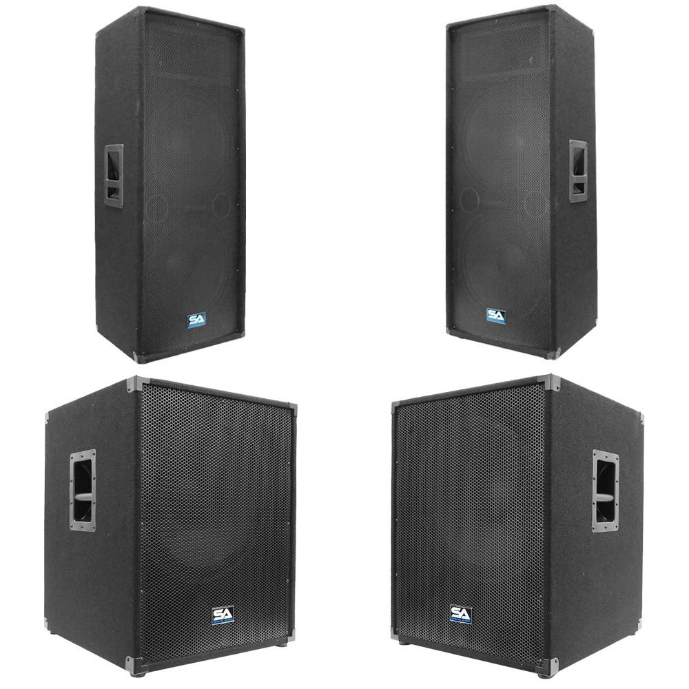 These amazing 15 inch Pro Audio Speaker Cabinets deliver every sound loud and clear with dual Pro Audio 15 inch woofers, 1.5 inch titanium tweeter driver, a frequency response of 45Hz to 20,000Hz, and 700 watts RMS, 1400 watts peak power. These awesome 18 inch Pro Audio PA Subwoofer Cabinets deliver the low end sounds loud and clear with an 18 inch woofer and 500 watts RMS, 1000 watts peak power. With your purchase, you will receive a pair of dual 15" Pro Audio Speaker Cabinets and a pair of 18" Pro Audio Subwoofer Cabinets pictured and described above. It doesn't matter if you are doing a DJ gig, a wedding, a church event, or a club gig, these speakers and subs will deliver the sound you want! The Seismic Audio brand was designed to make the professional musician, as well as the musician low on cash, sound great. So, put this package in your cart today and get ready for years of trouble-free, crystal clear sound!