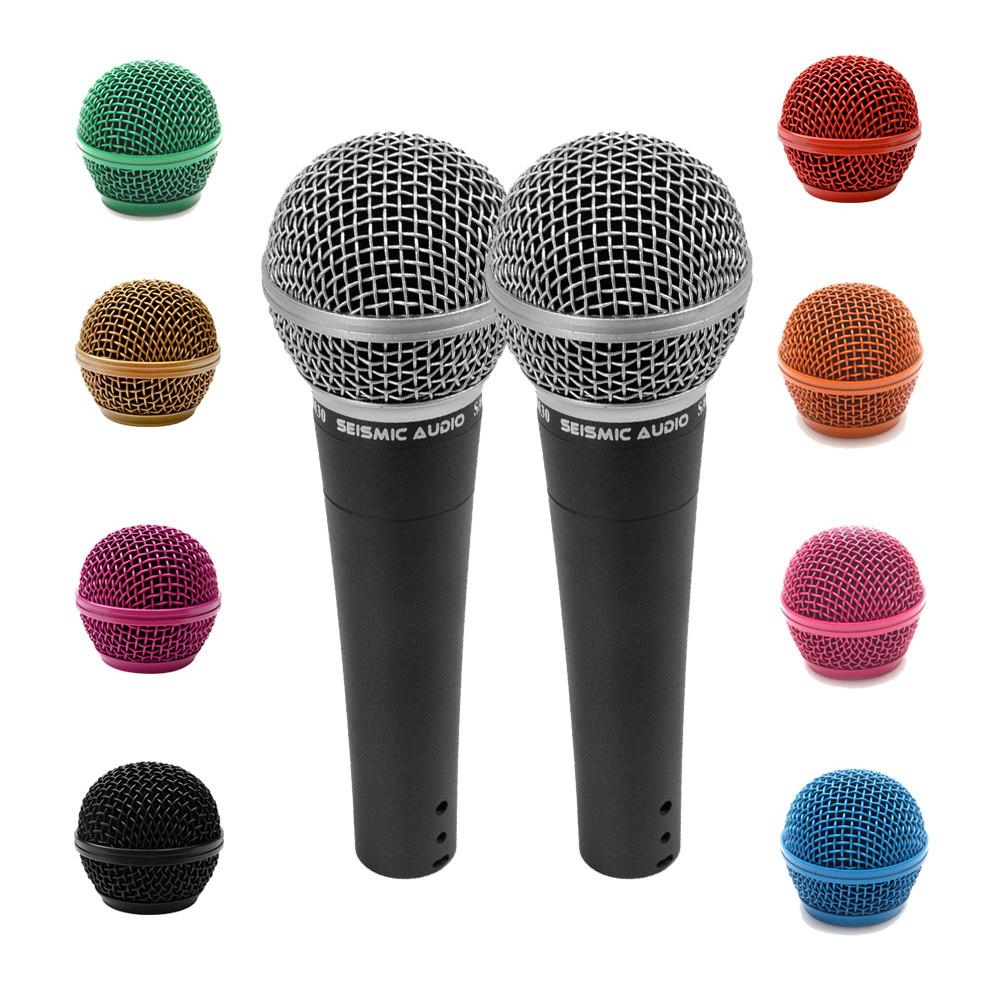 - CONTENTS: Pair of Dynamic Microphones and 8 Steel Mesh Microphone Grill Heads