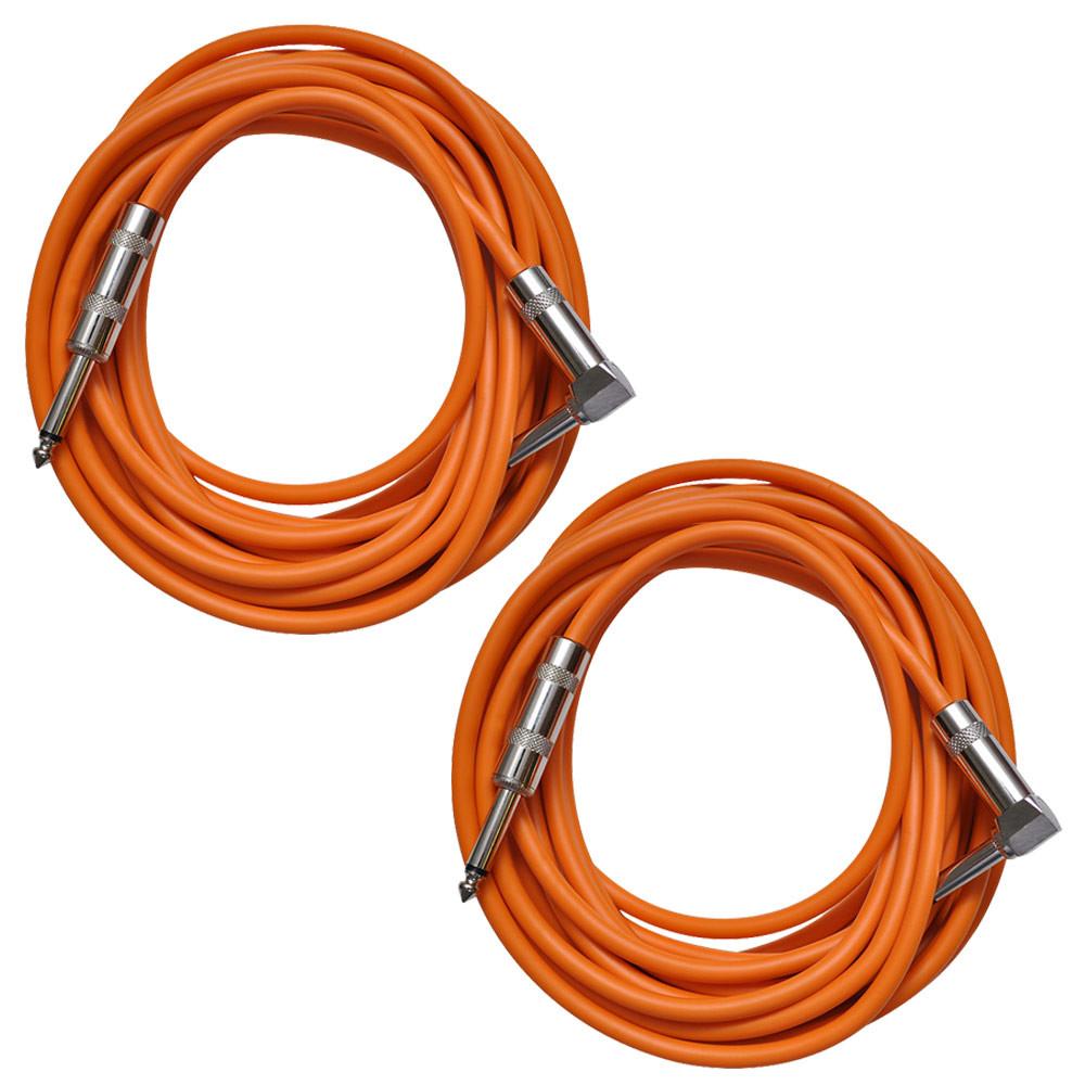 Pair of Orange 20 Foot Right Angle to Straight Guitar Cables