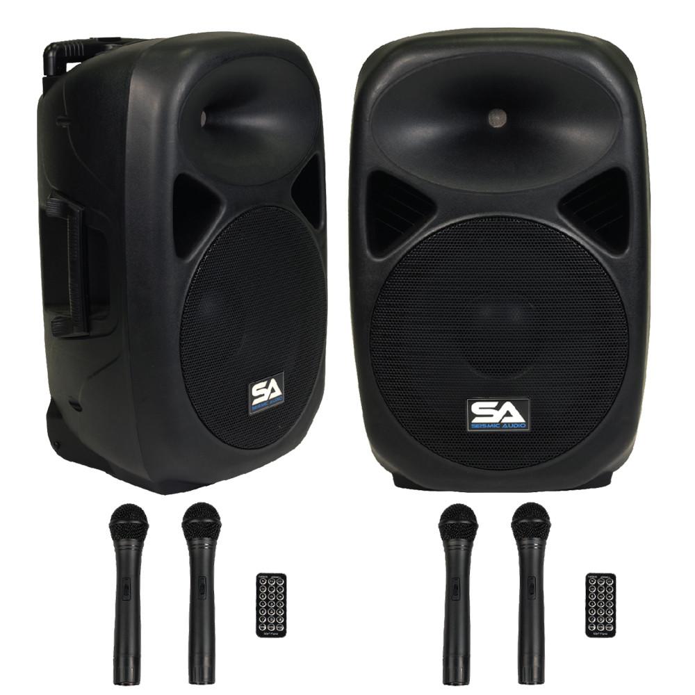 - Model: RSG-12 - Pair of Portable Powered 12" PA/DJ Speakers with Bluetooth, 2 Wireless Mics and Rechargeable Battery