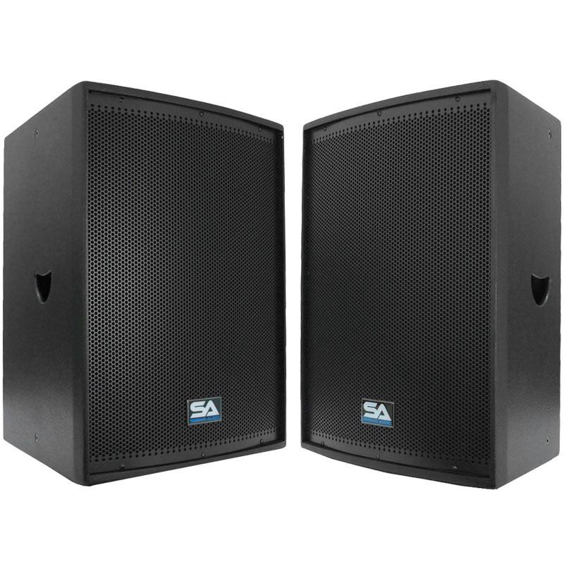 These are 100% plywood, which makes for a lighter, easier to manage speaker cabinet.  You can mount these to your church ceilings, banquet halls, cafeteria, etc.  These have pole mounts for speaker stands and are angled for monitor use.