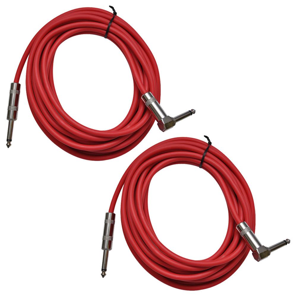 Pair of Red 20 Foot Right Angle to Straight Guitar Cables