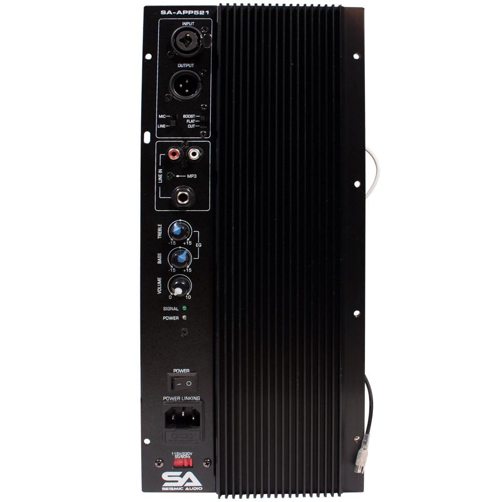 Seismic Audio's line of Plate Amplifiers gives you the ability to build your own powered speaker cabinets and powered subwoofer cabinets. The SA-APP521 is a Class AB amplifier designed for full range PA speaker enclosures. It has a power rating of 250 Watts RMS and 500 Watts Peak. This plate amplifier offers a 2 Band EQ with Treble and Bass Control. This amp also has a Mic/Line switch as well as a 1/8 inch input making it great for DJ and Karaoke applications. When paired with the right loudspeaker driver and speaker, these plate amplifiers produce the loud, clear, and clean sound to reinforce your PA loudspeaker system. With your purchase, you will receive one Class AB 250 Watt Plate Amplifier pictured and described above.