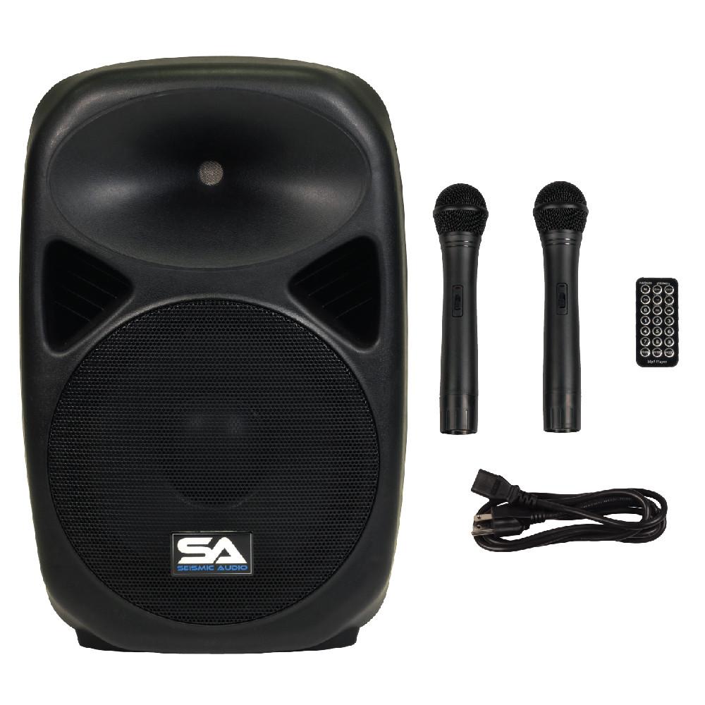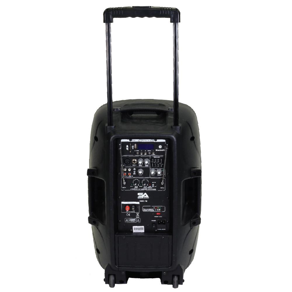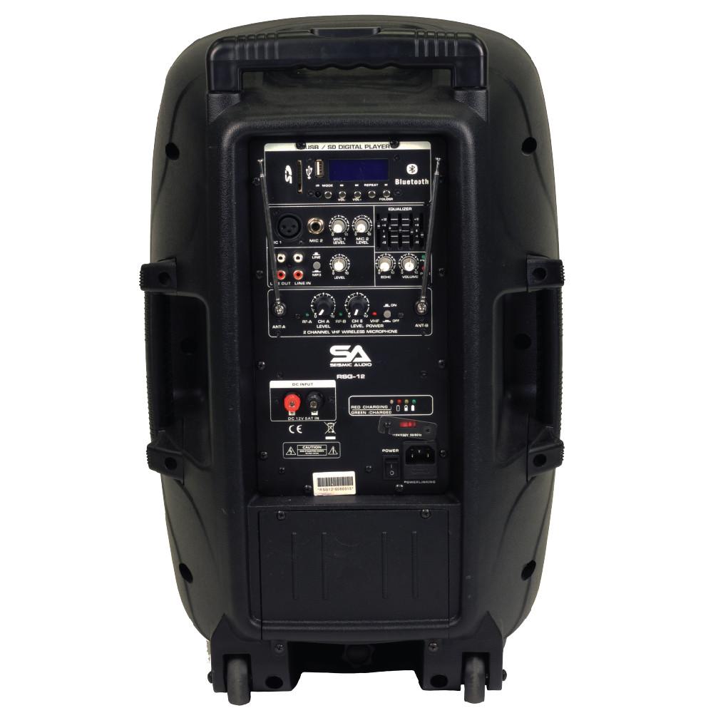 - Model: RSG-12 - Portable Powered 12" PA/DJ Speaker with Bluetooth, 2 Wireless Mics and Rechargeable Battery