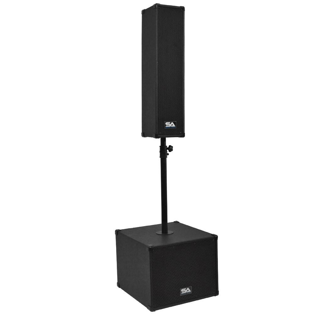 The SA-CPPA1 is a powered portable PA system that delivers big sound in a medium package at a small price. This full range PA system features a 12 inch subwoofer, a vertical array column of five inch speakers and compresion tweeter, and a sub pole to mount the two. This complete sound reinforcement system is perfect for venue installation, bands, DJs and any application that requires crystal clear sound reinforcement. Give your live sound set up more punch by adding a second active portable PA system.