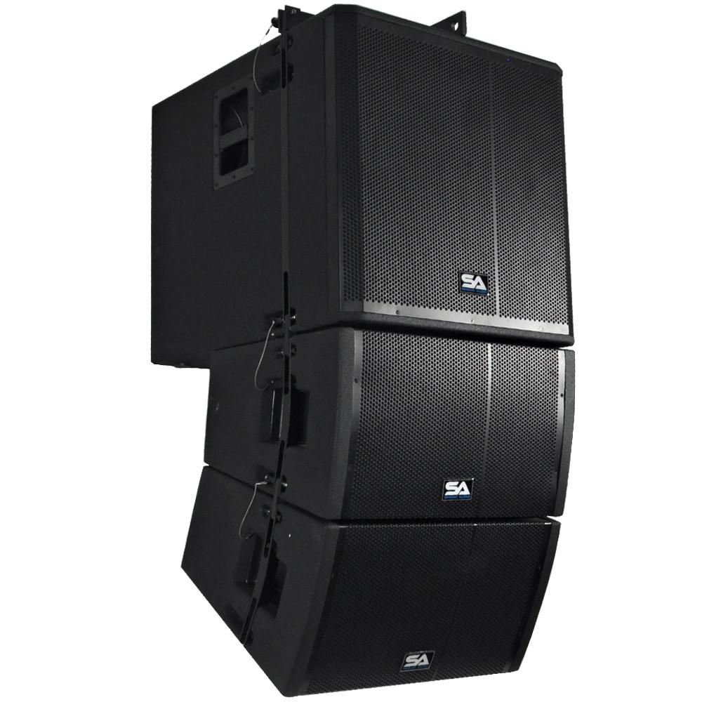 Active 18 Inch Line Array Subwoofer, Two Active 12 Inch Line Array Speakers and Mounting Pole