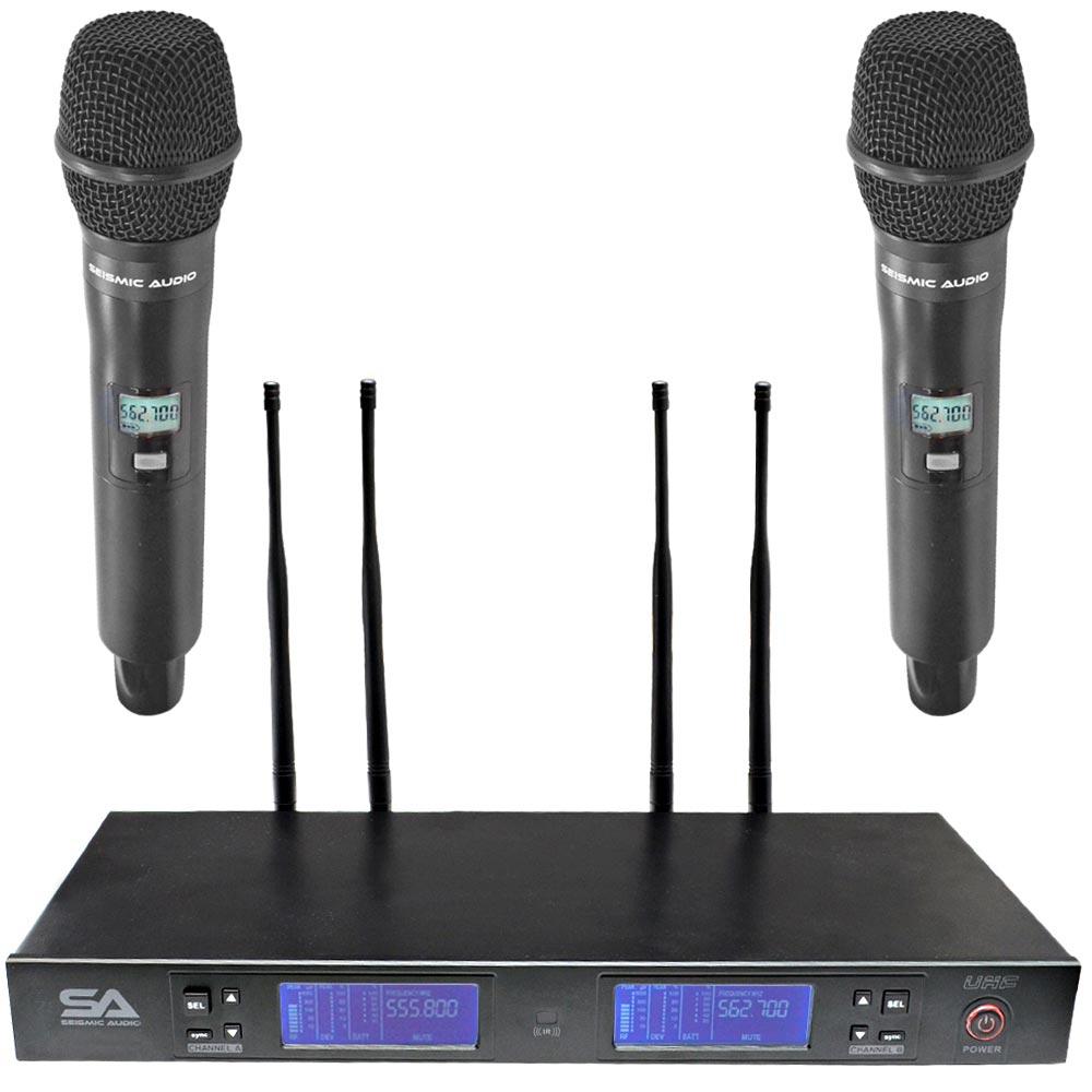 For less cables and more freedom, Seismic Audio has created the SA-U2 wireless microphone system. This wireless mic set comes with a 2 channel receiver and 2 handheld wireless microphones. These systems are able to adapt to your needs. A massive operational range compliments a host of design features intended to provide the very highest audio quality. The SA-U2HH1-2 offers superior all-around performance for crisp, clean, and balanced vocals. Whether performing onstage or speaking from a podium, the Seismic Audio SA-U2 wireless microphone systems are the right tool for the job.