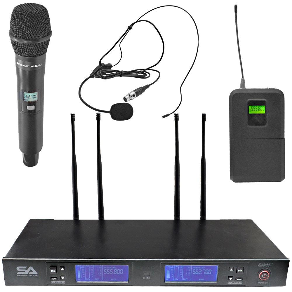 2 Channel UHF Wireless Microphone System with 1 Handheld & 1 Headset Microphone, Adjustable Frequencies