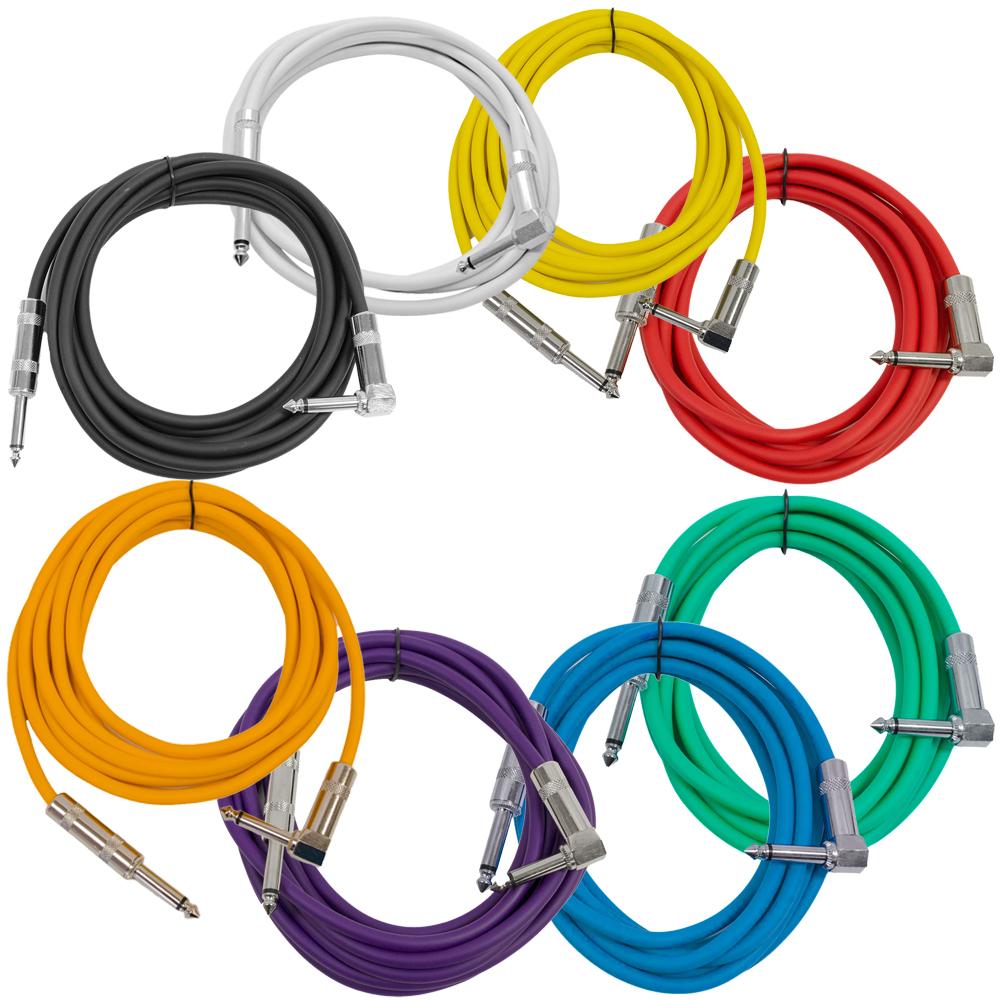 - 8 Pack of 10 Foot 1/4 Inch TS Right Angle to Straight Guitar Cables