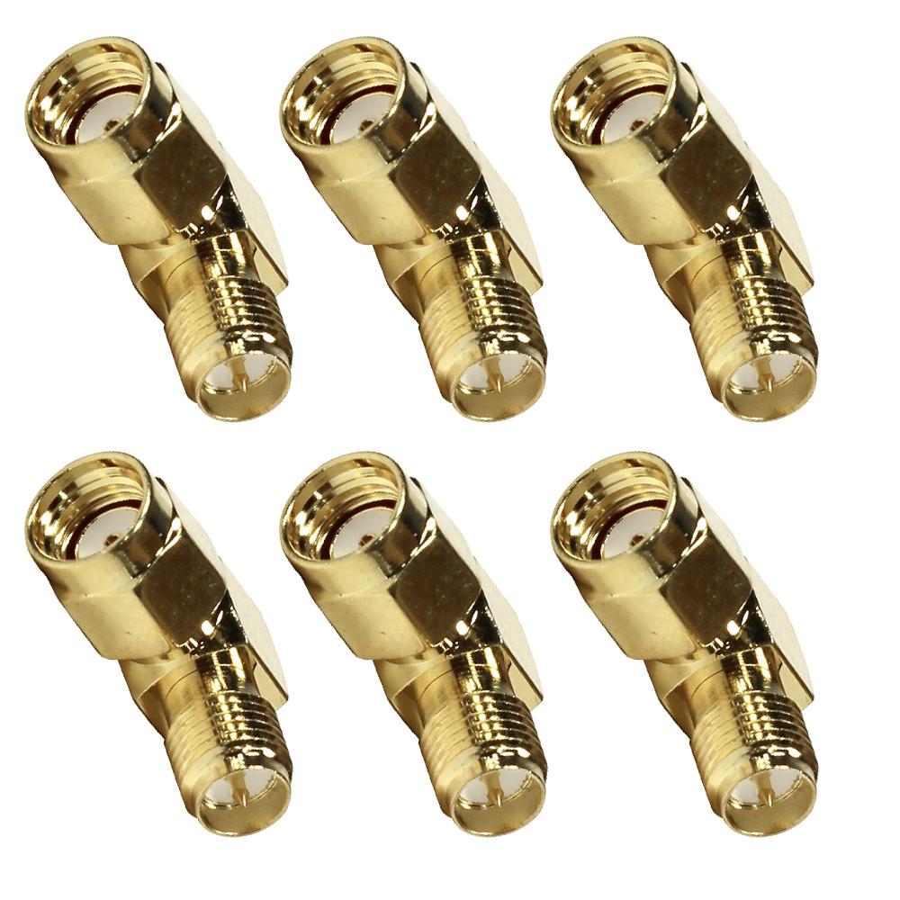 You can never have too many of these coax adapters in your toolbox. These connectors are great for a quick fix or when you need to convert a straight to a right angle coax connection. These feature sub-miniature connectors on each end. Awesome quality SMA commercial grade adapters are very hard to find, especially at a decent price. With your purchase, you will receive six gold coax cable adapters pictured and described. Join the Seismic Audio revolution and see what tens of thousands already know. Whether it is for the garage band, live sound, stage, or studio... Seismic Audio is bang for the buck, the best Pro Audio gear for all PA applications!Gold Coax SMA Female to Right Angle Male Cable Adapters