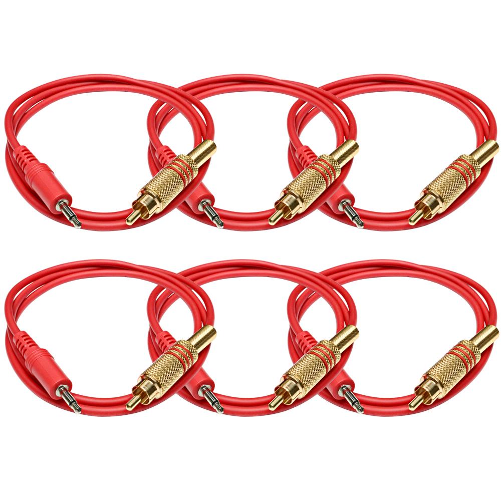 - Contents: 6 Pack 3 Foot Red 3.5mm Mono Male to RCA Male Jack Audio Patch Cables