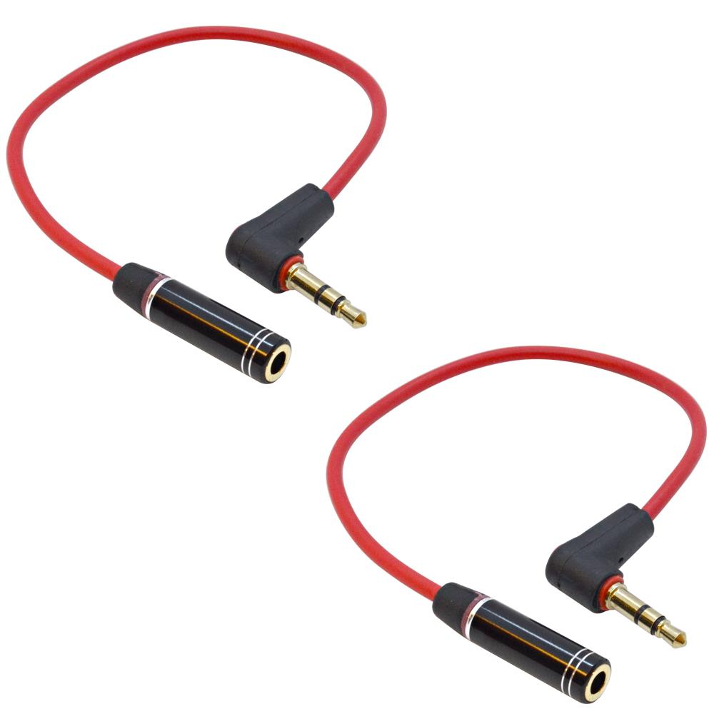 - 2 Pack of Right Angle 1/8" (3.5mm) Male to Female 1/8" (3.5mm) Audio Cable