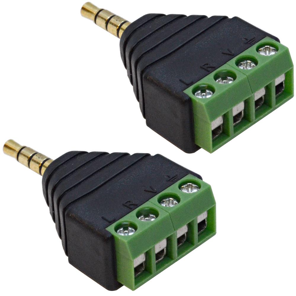 These Balun Connectors feature a 3.5mm TRRS Male connector on one end and a 4 screw terminal block on the other end allowing you to connect raw wires to the TRRS jack. With your purchase, you will receive two 3.5mm male balun connectors pictured and described. Join the Seismic Audio revolution and see what tens of thousands already know. Whether it is for the garage band, live sound, stage, or studio... Seismic Audio is bang for the buck, the best Pro Audio gear for all PA applications!3.5mm Stereo Male to 4 Screw Terminal AV Balun Connectors